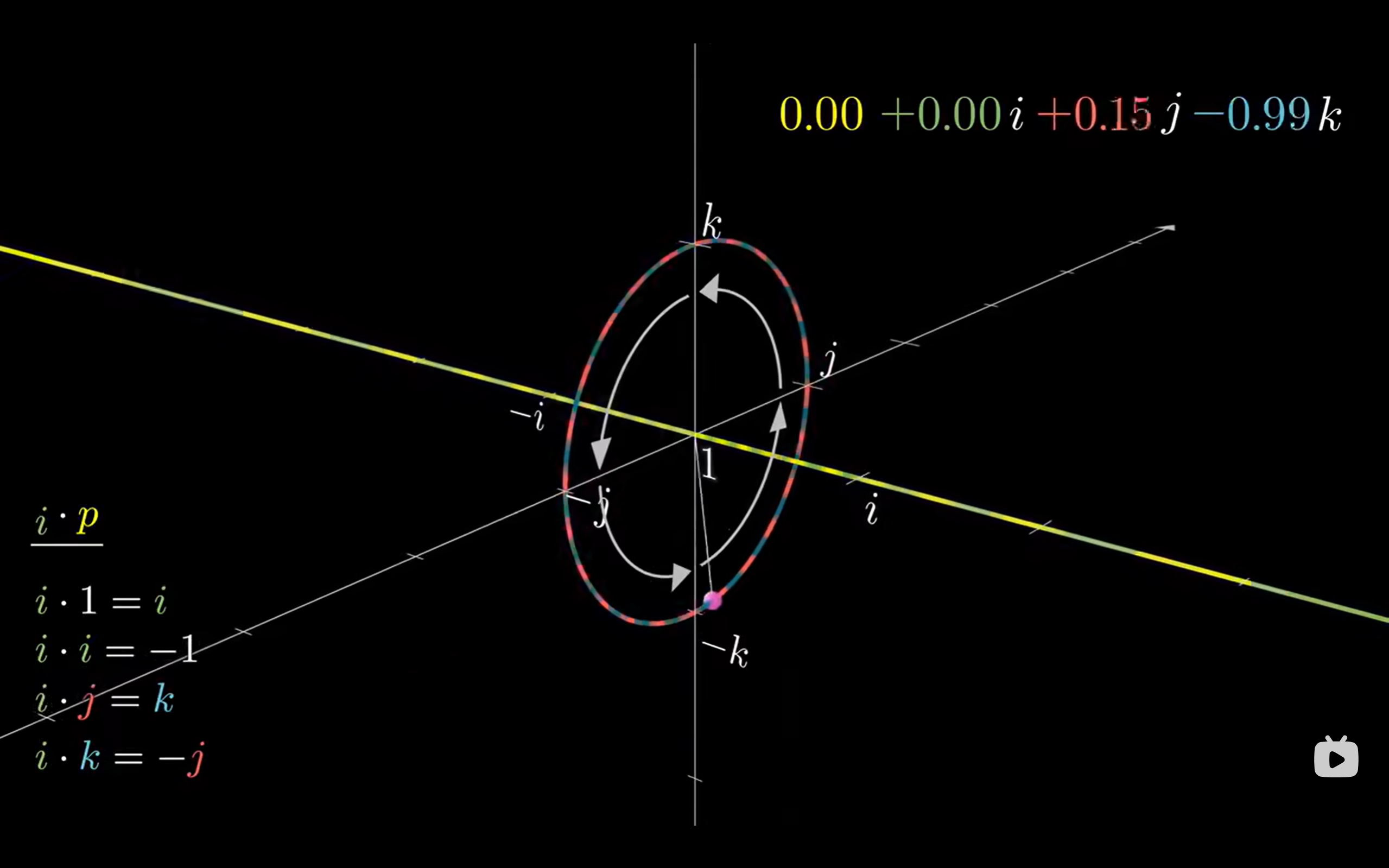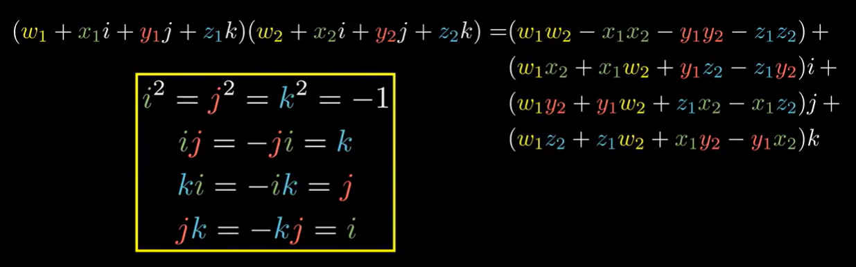 四元数的四个数字由一个实部和三个虚部组成,是一个超复数形式: