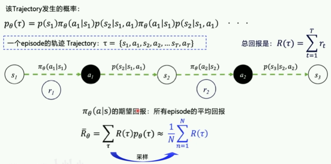 • 一个 Episode 视为一个轨迹,直接优化策略函数