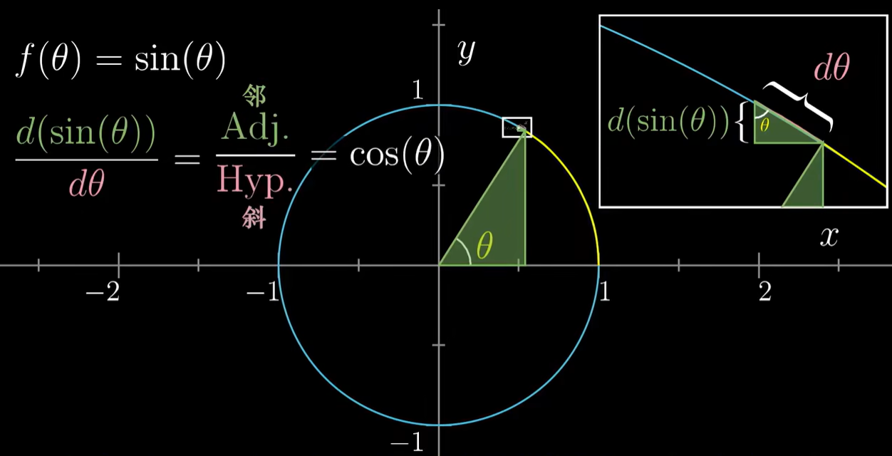 • 三角函数: \frac{d(\sin(\theta))}{d\theta} = \cos(\theta)$$$$\frac{d(\cos(\theta))}{d\theta} = -\sin(\theta)