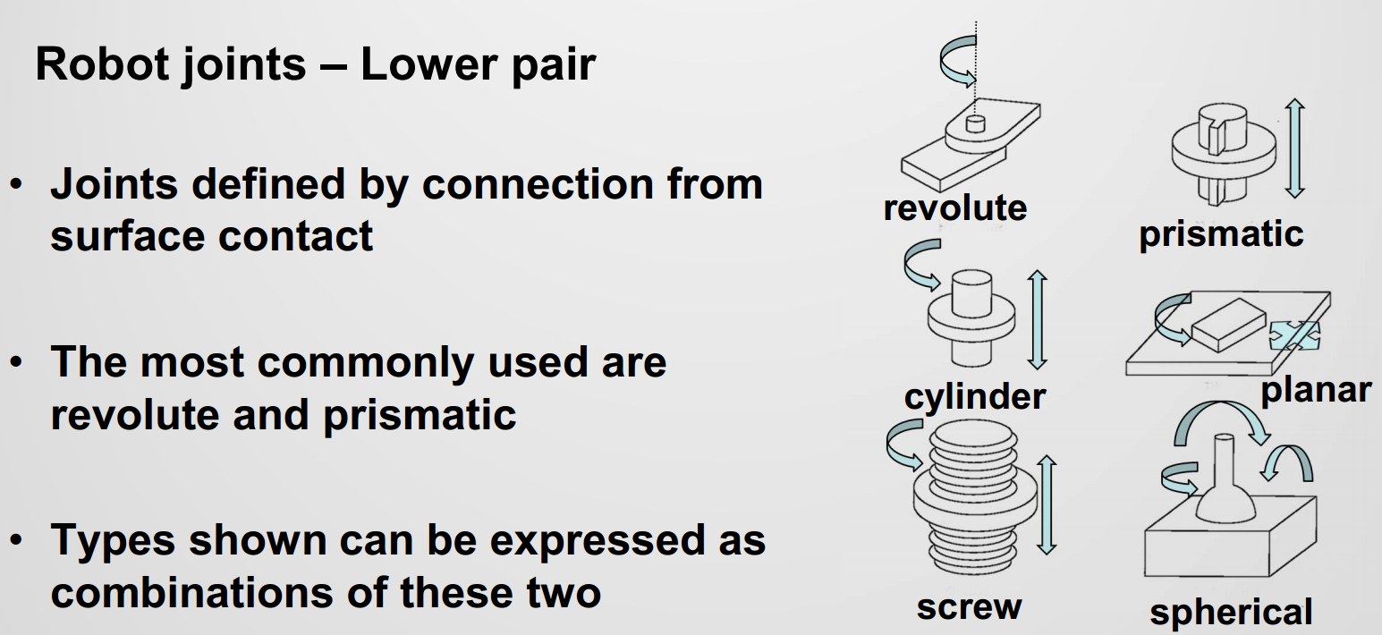 - Lower Pair:指的是两个构件之间面接触的运动副