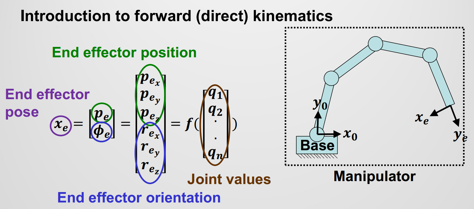 i变换到坐标系i-1。 - 计算总变换:将所有的连杆变换矩阵连乘起来,就能得到从机器人基座(坐标系 0)到末端执行器(坐标系 n)的总变换矩阵;就是机器人的运动学方程,它包含了末端执行器的位置和姿态信息,是所有运动控制的基础。