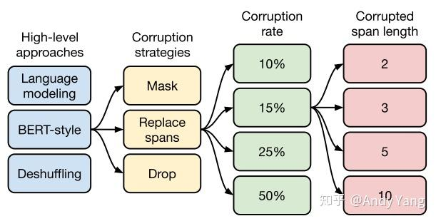 • 高层次方法:选择类似 BERT 的 MLM 任务,即破坏部分并还原