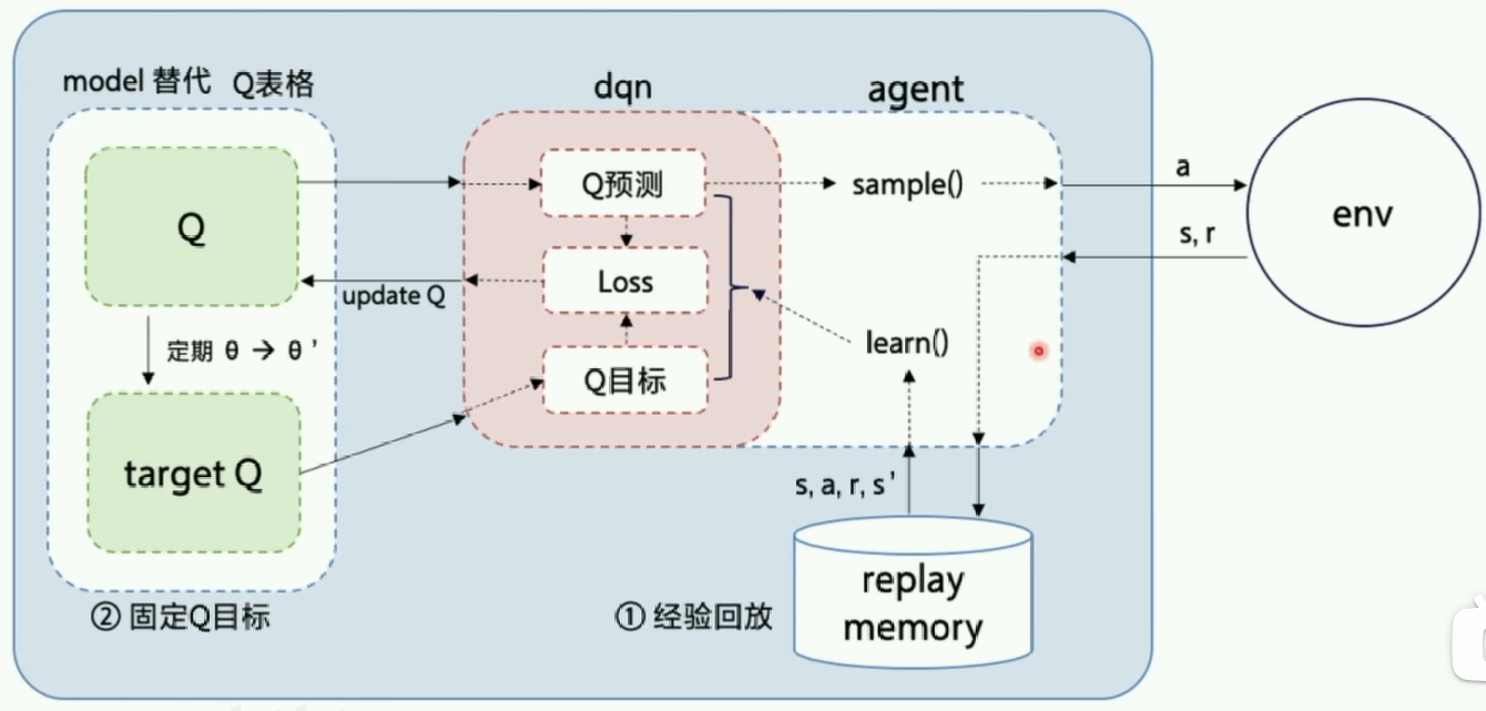- 更新:损失函数 前一项是 Target 计算得到的真实值,后一项是预测值