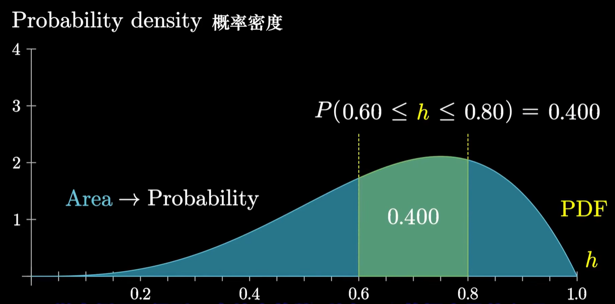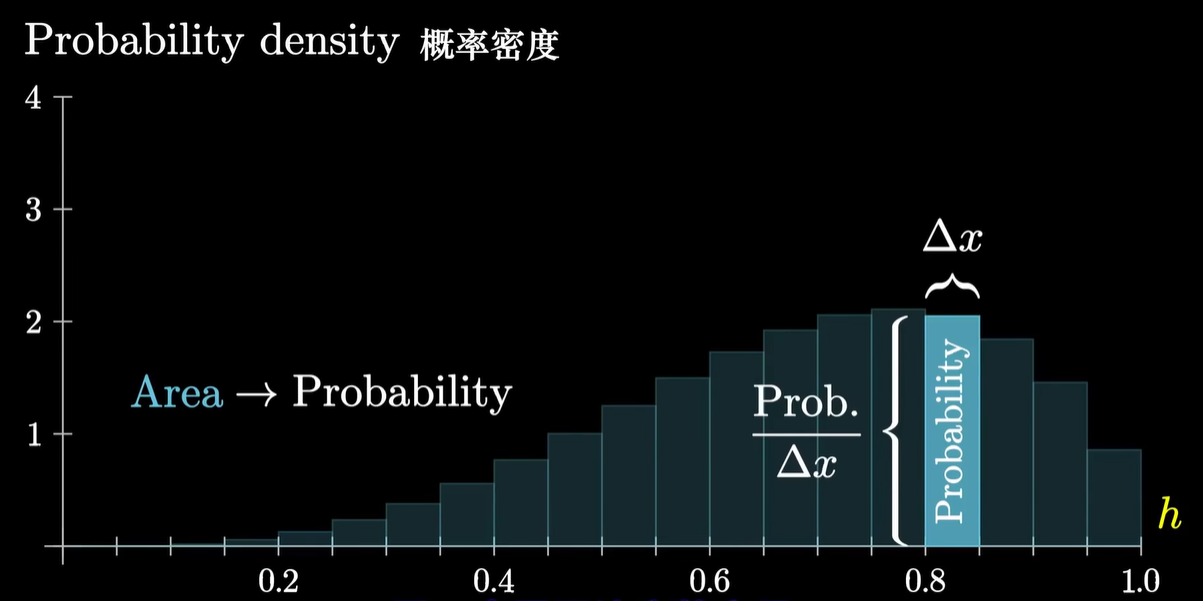 - 场景:处理连续变化的概率,需要积分;就像处理离散的概率需要相加
